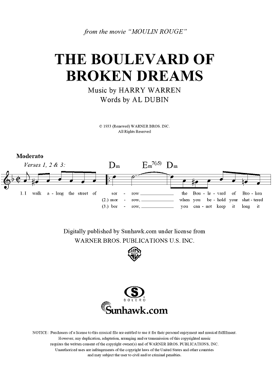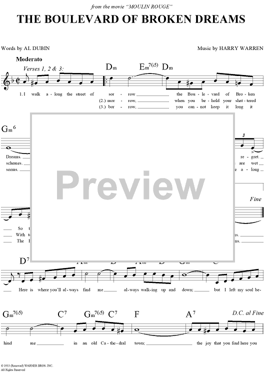 Digital Sheet Music for The Boulevard of Broken Dreams by Harry Warren, Al Dubin scored for Lead Sheet; id:264782