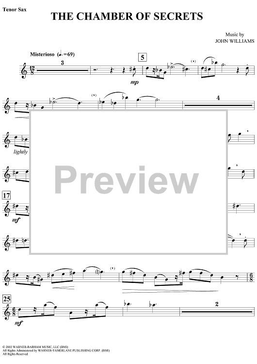 Digital Sheet Music for The Chamber of Secrets by John Williams scored for Tenor Sax/Piano; id:317321