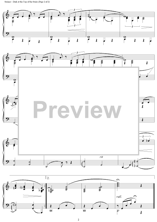Digital Sheet Music for The Dark at the Top of the Stairs (Main Theme) by Max Steiner scored for Piano Solo; id:116392