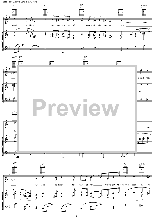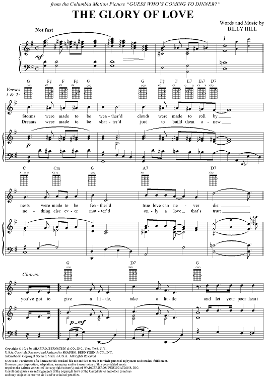 Digital Sheet Music for The Glory of Love by Benny Goodman, Billy Hill scored for Piano/Vocal/Chords; id:266796