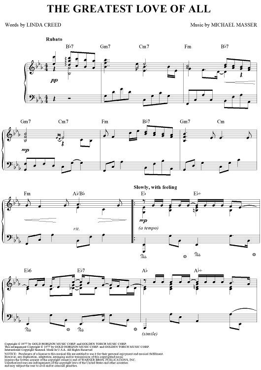 "The Greatest Love of All" Sheet Music by Michael Masser