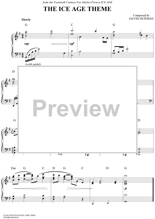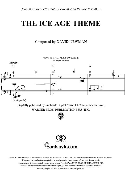 Digital Sheet Music for The Ice Age Theme by David Newman scored for Piano Solo; id:296395