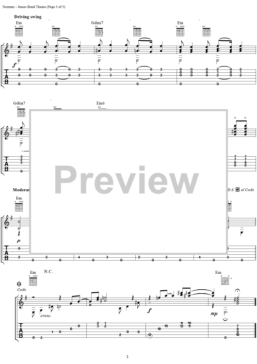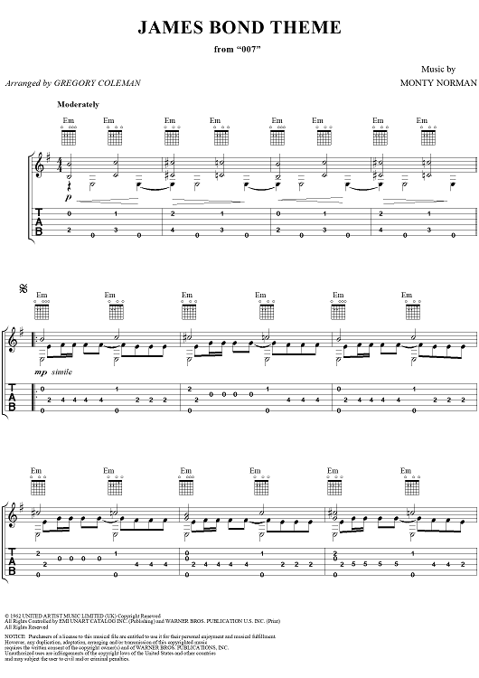 Digital Sheet Music for The James Bond Theme by Gregory Coleman, Monty Norman scored for Guitar Tab; id:253374