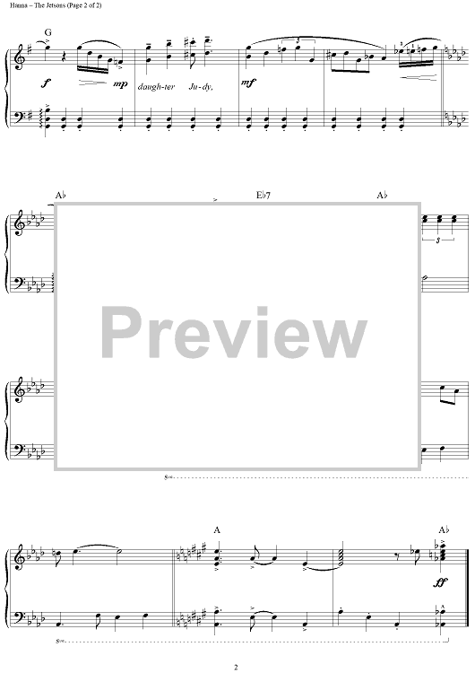 Digital Sheet Music for The Jetsons Main Title by Joseph Barbera, Hoyt Curtin, Tom Roed, William Hanna scored for Piano Solo; id:120692