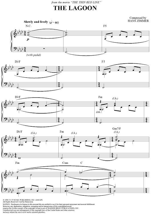 "The Lagoon" Sheet Music by Hans Zimmer