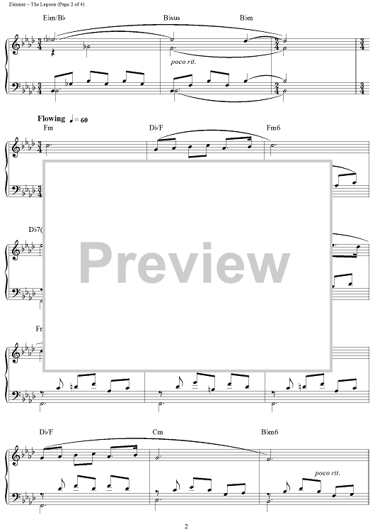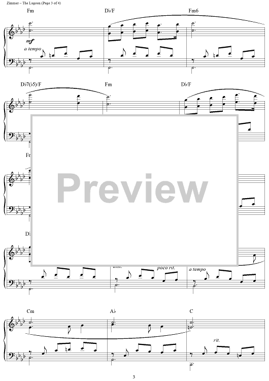Digital Sheet Music for The Lagoon by Hans Zimmer scored for Piano Solo; id:114311