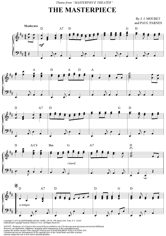 Digital Sheet Music for The Masterpiece by Paul Parnes, Jean-Joseph Mouret scored for Piano Solo; id:114312