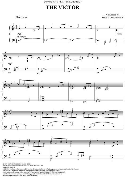 Digital Sheet Music for The Victor by Jerry Goldsmith scored for Piano Solo; id:113883
