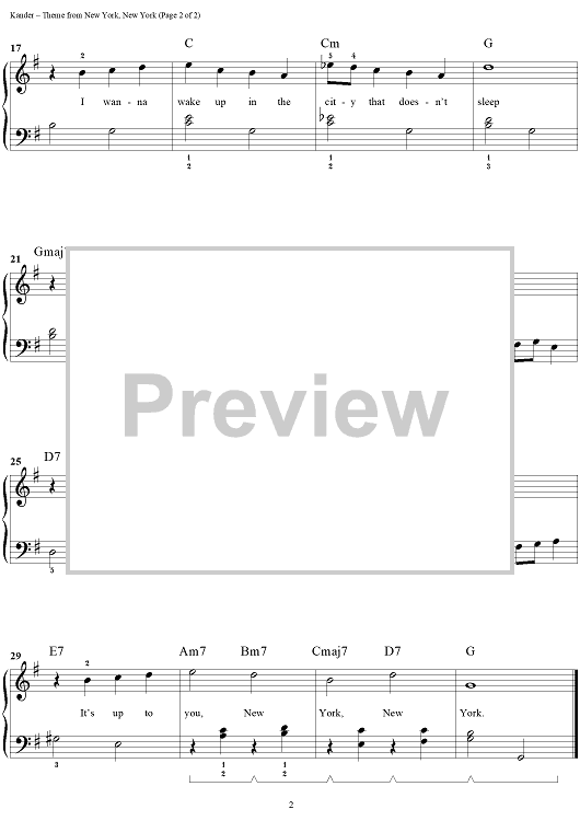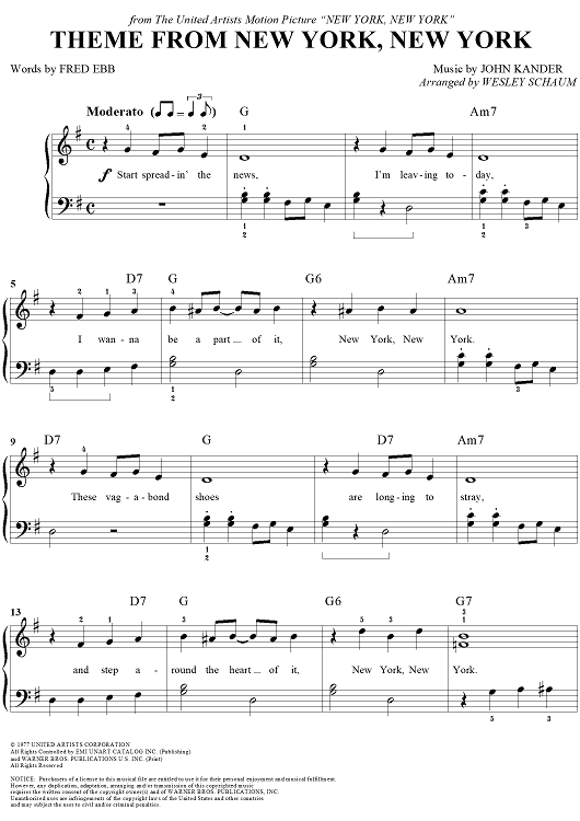 Digital Sheet Music for Theme from New York, New York by John Kander, Wesley Schaum, Fred Ebb scored for Easy Piano; id:288522