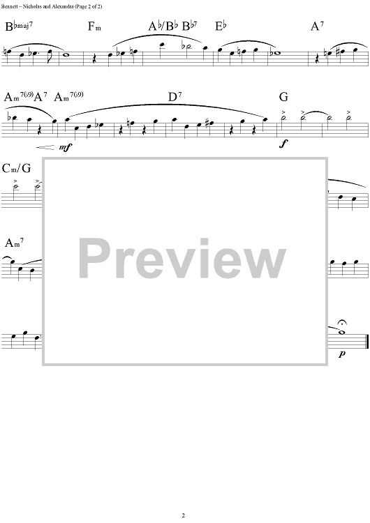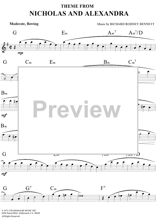 Digital Sheet Music for Theme from Nicholas and Alexandra by Richard Rodney Bennett scored for Lead Sheet; id:116490
