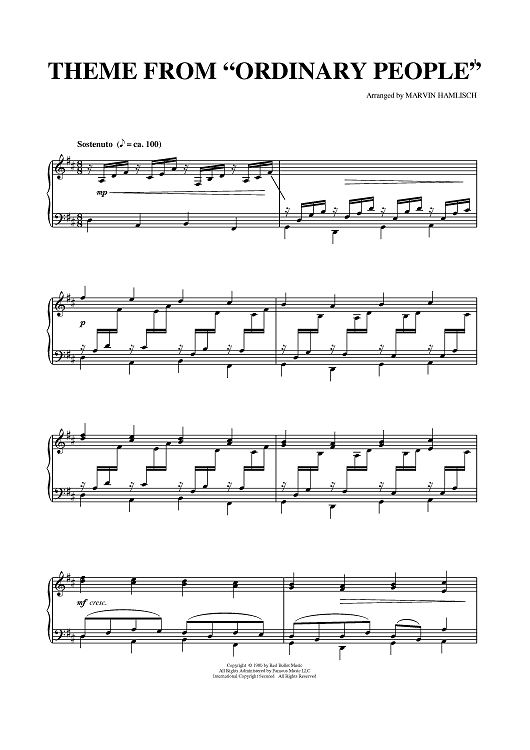 "Theme From "Ordinary People"" Sheet Music by Marvin Hamlisch
