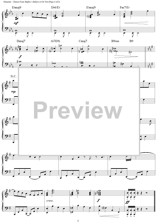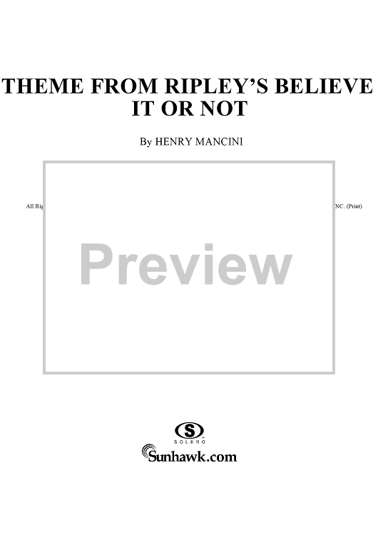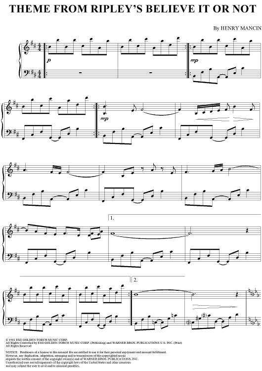 Digital Sheet Music for Theme From Ripley's Believe it Or Not by Henry Mancini scored for Piano Solo; id:119671
