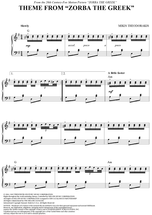 "Theme from Zorba the Greek" Sheet Music by Mikis Theodorakis
