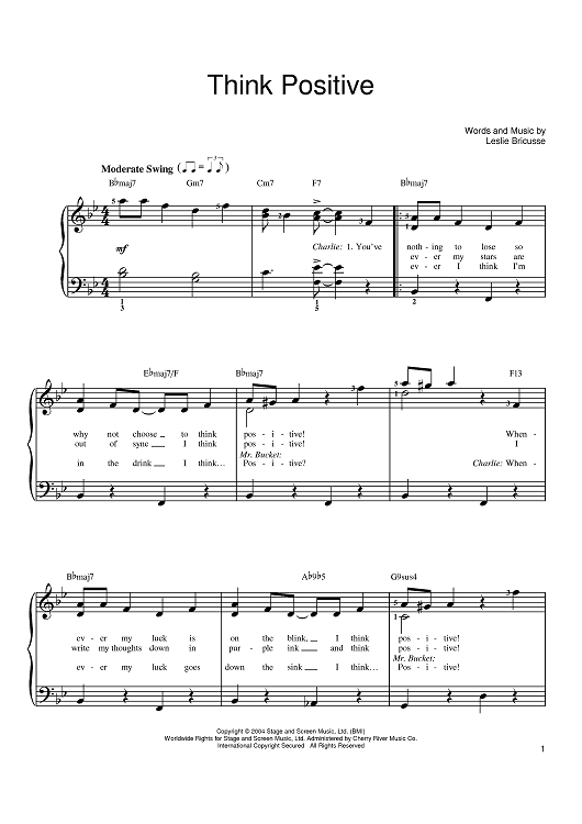 Digital Sheet Music for Think Positive by Leslie Bricusse, Willy Wonka scored for Easy Piano; id:389088