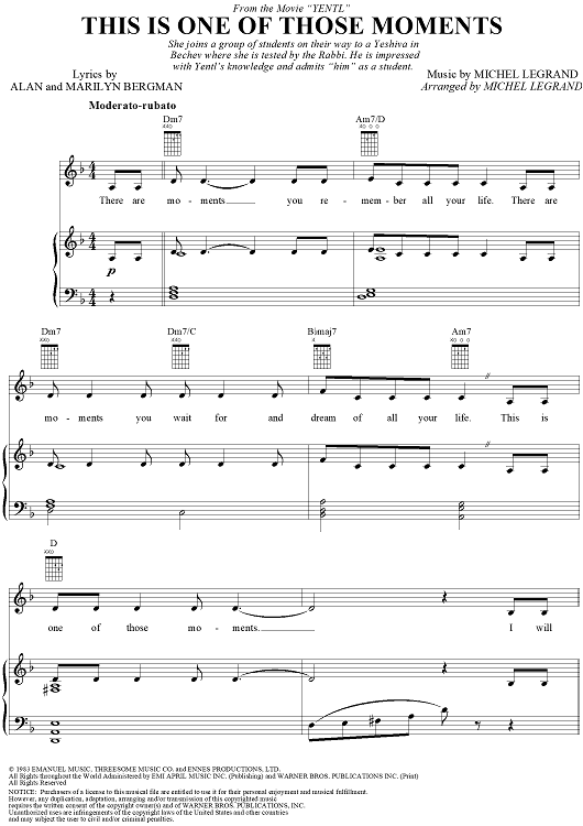 Digital Sheet Music for This Is One of Those Moments by Michel LeGrand, Alan Bergman, Marilyn Bergman scored for Piano/Vocal/Chords; id:250795