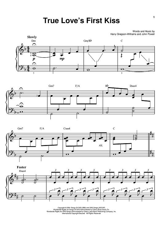 Digital Sheet Music for True Love's First Kiss by Harry Gregson-Williams, John Powell scored for Easy Piano; id:369676