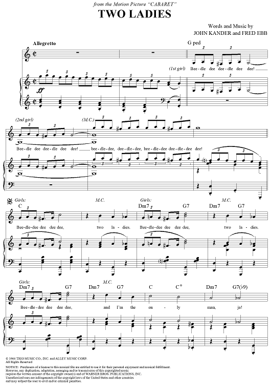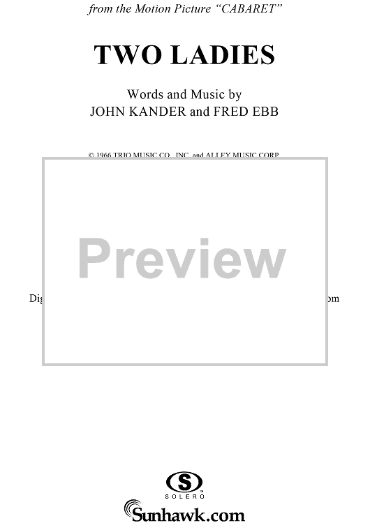 Digital Sheet Music for Two Ladies by John Kander, Fred Ebb scored for Piano/Vocal/Chords; id:249730