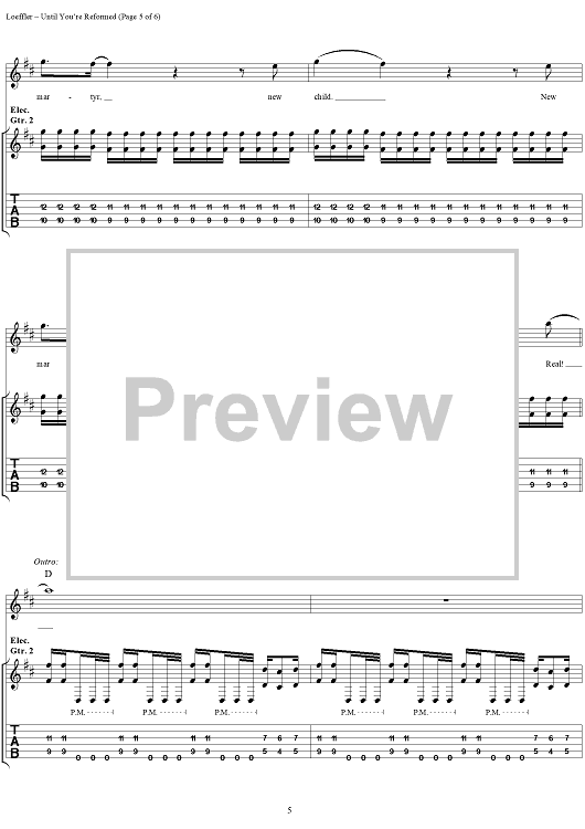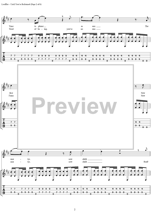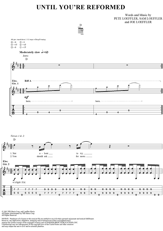 Digital Sheet Music for Until You're Reformed by Chevelle, Pete Loeffler, Sam Loeffler, Joe Loeffler scored for Guitar Tab/Vocal; id:297332
