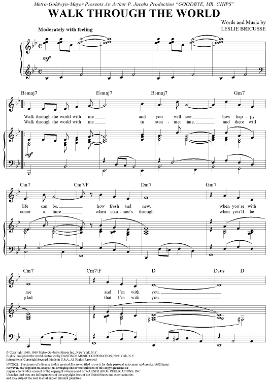 "Walk through the World" Sheet Music by Leslie Bricusse