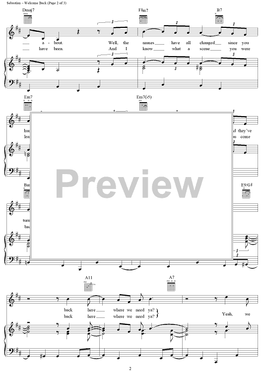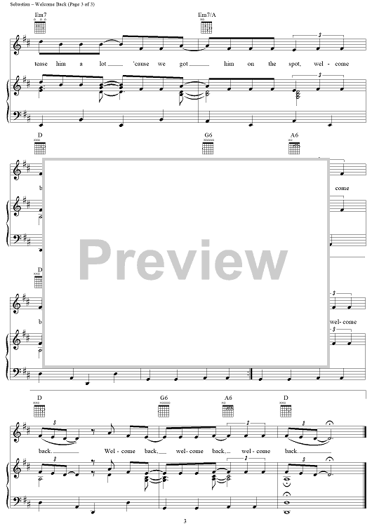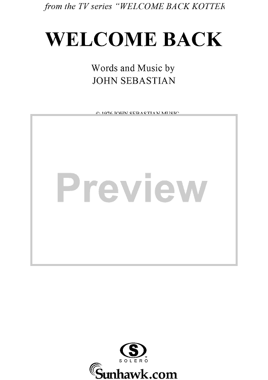 Digital Sheet Music for Welcome Back by John Sebastian scored for Piano/Vocal/Chords; id:124392