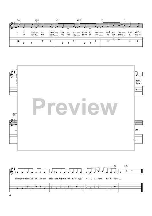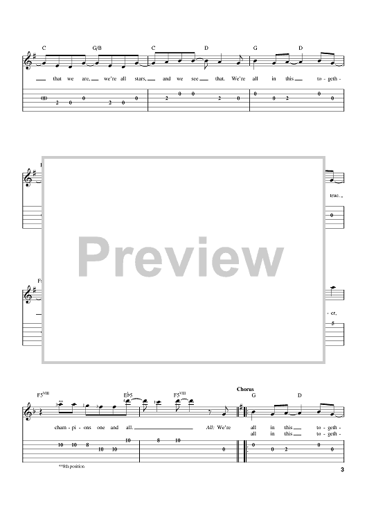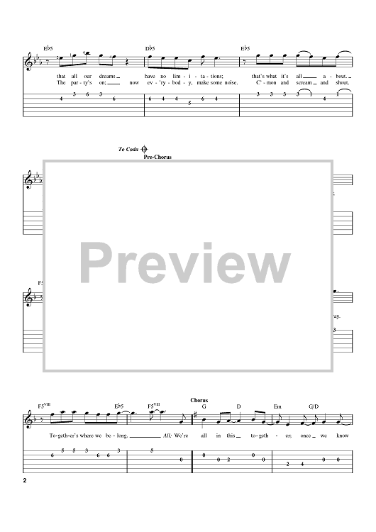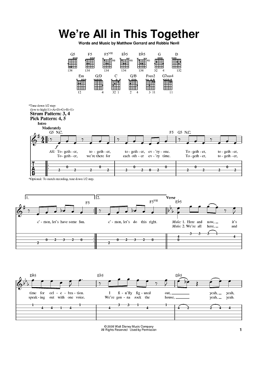 Digital Sheet Music for We're All In This Together by Matthew Gerrard, Robbie Nevil scored for Easy Guitar Tab; id:402250