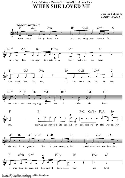 Digital Sheet Music for When She Loved Me by Sarah McLachlan, Randy Newman scored for Lead Sheet; id:448610