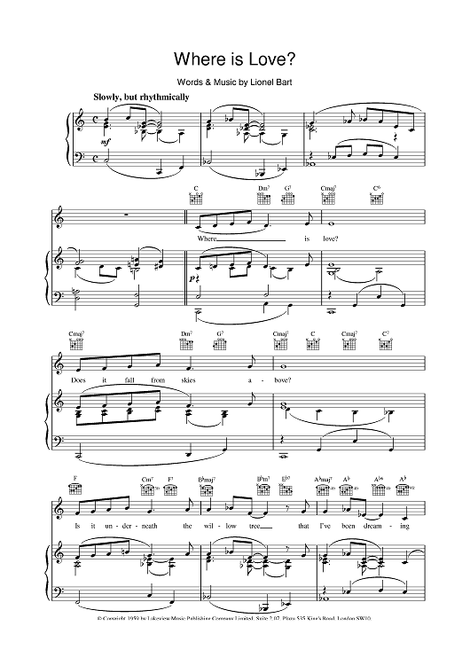 "Where Is Love?" Sheet Music by Lionel Bart