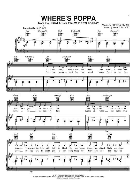 Digital Sheet Music for Where's Poppa by Norman Gimbel, Jack Elliott scored for Piano/Vocal/Chords; id:373618