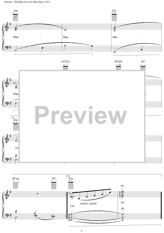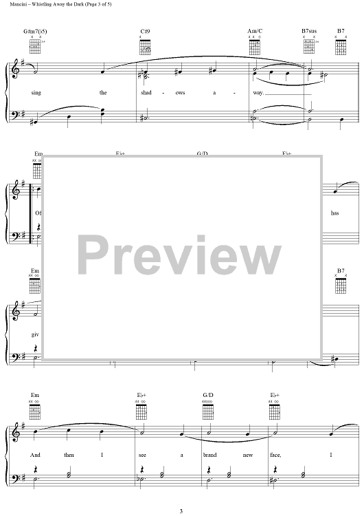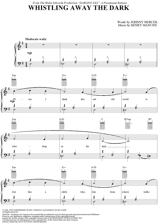 Digital Sheet Music for Whistling Away the Dark by Henry Mancini, Johnny Mercer, Julie Andrews scored for Piano/Vocal/Chords; id:154686