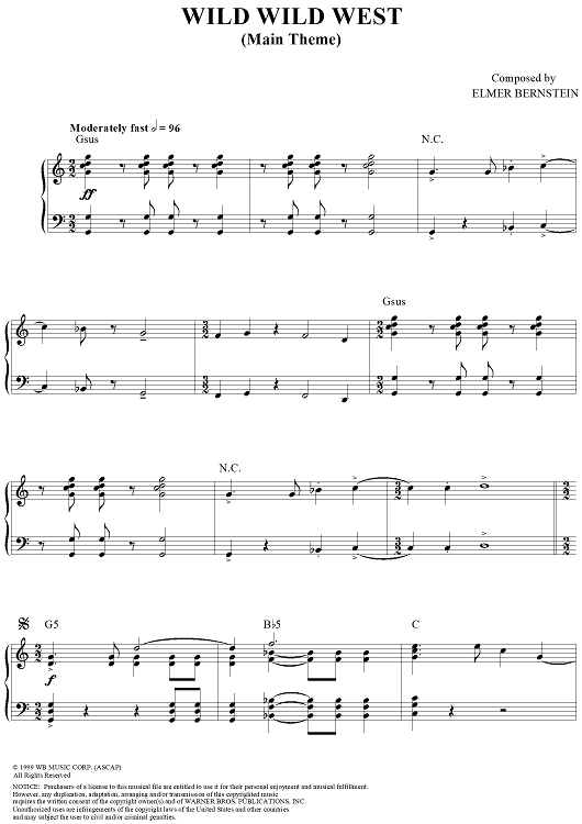 "Wild Wild West (Main Theme)" Sheet Music by Elmer Bernstein