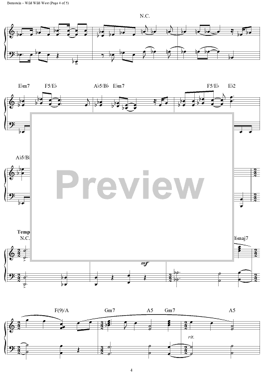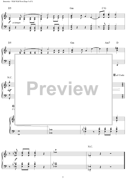 Digital Sheet Music for Wild Wild West (Main Theme) by Elmer Bernstein scored for Piano Solo; id:117931
