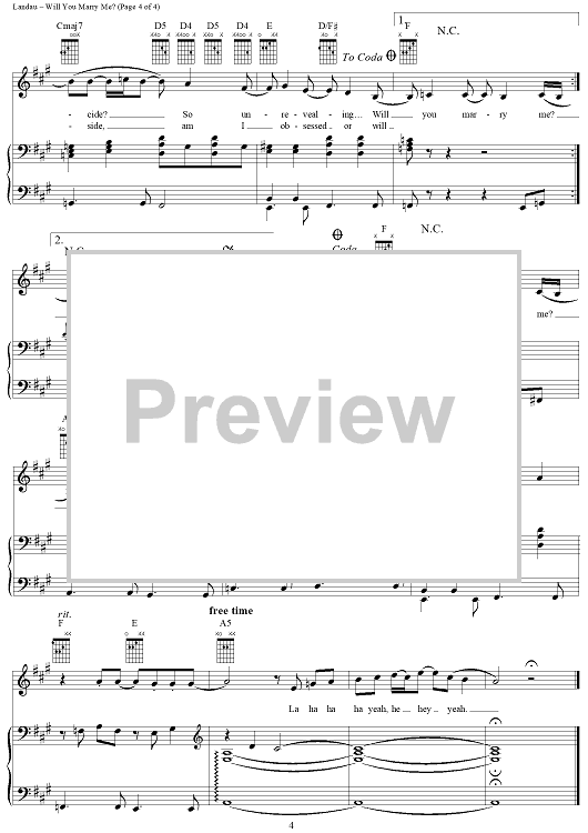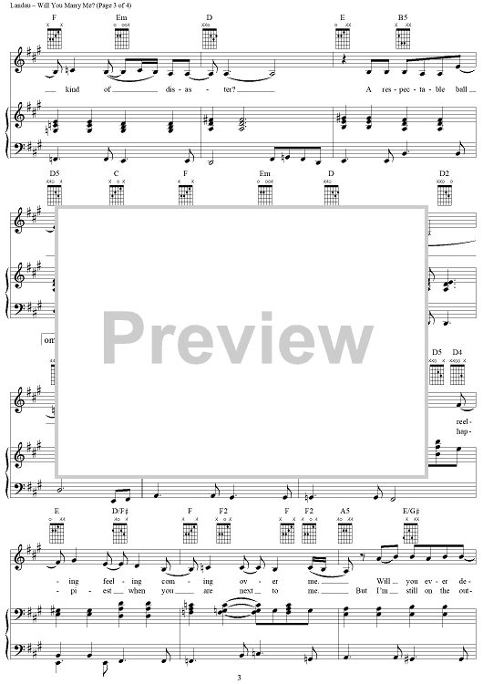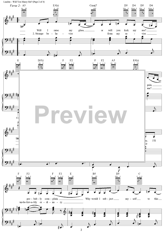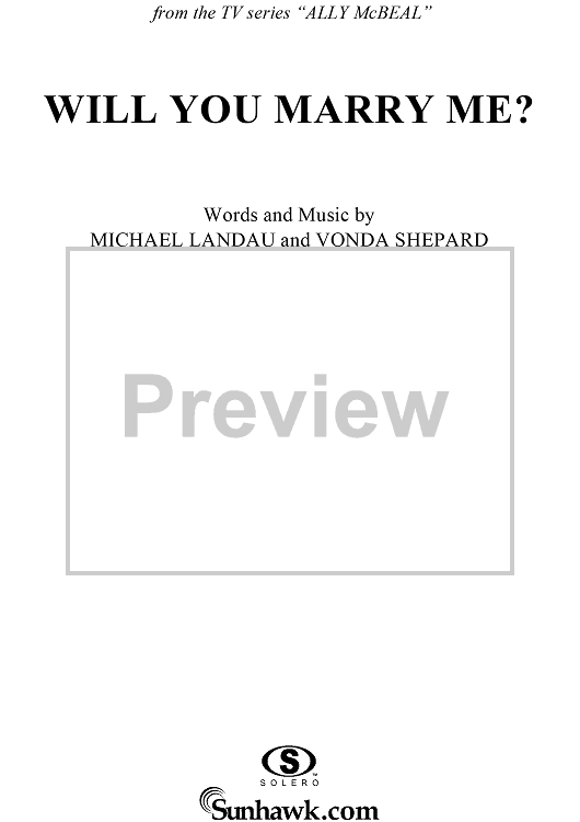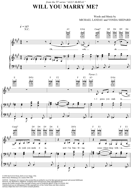 Digital Sheet Music for Will You Marry Me? by Vonda Shepard, Michael Landau scored for Piano/Vocal/Chords; id:240898