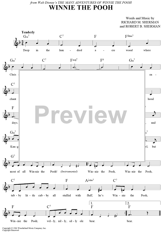 Digital Sheet Music for Winnie The Pooh by Richard M. Sherman, Robert B. Sherman scored for Lead Sheet; id:448615