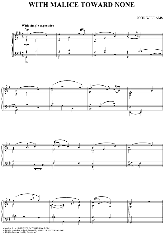 Digital Sheet Music for With Malice Toward None by John Williams scored for Piano Solo; id:434443