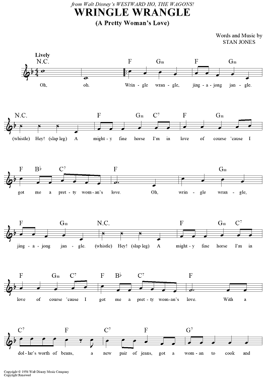 Digital Sheet Music for Wringle Wrangle (A Pretty Woman's Love) by Stan Jones scored for Lead Sheet; id:448617