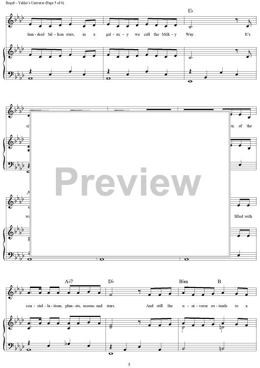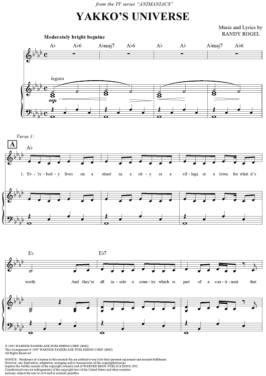 Digital Sheet Music for Yakko's Universe by Randy Rogel scored for Piano/Vocal/Chords; id:131741