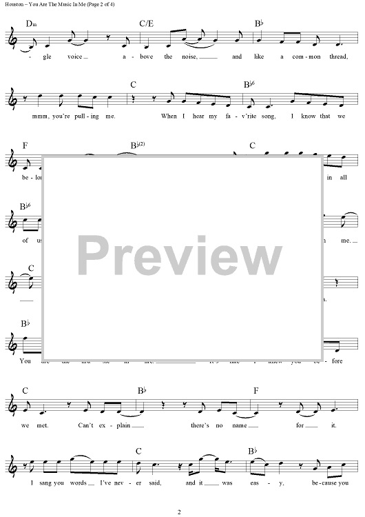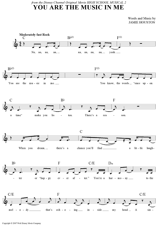 Digital Sheet Music for You Are the Music in Me by Jamie Houston scored for Lead Sheet; id:448620