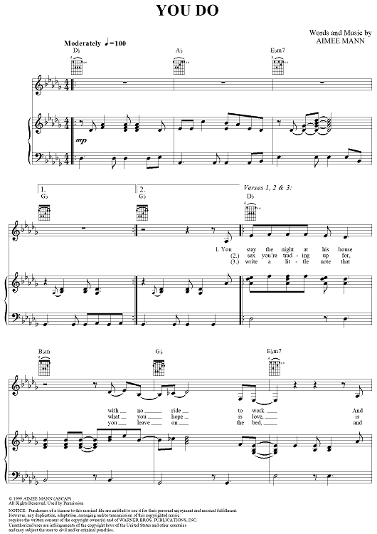 Digital Sheet Music for You Do by Aimee Mann scored for Piano/Vocal/Chords; id:235690