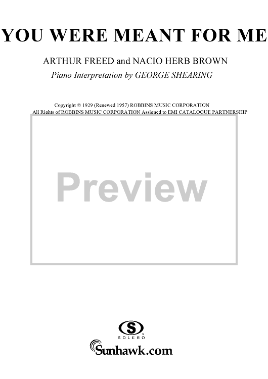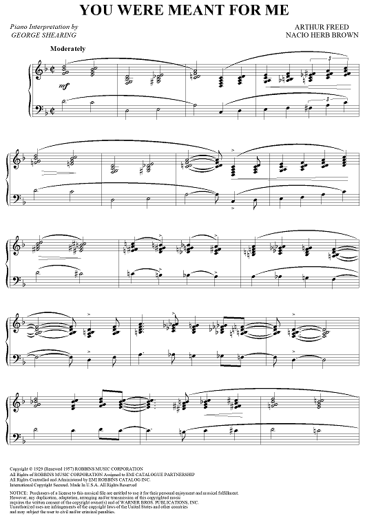 Digital Sheet Music for You Were Meant For Me by Nacio Herb Brown, George Shearing, Arthur Freed scored for Piano Solo; id:116403