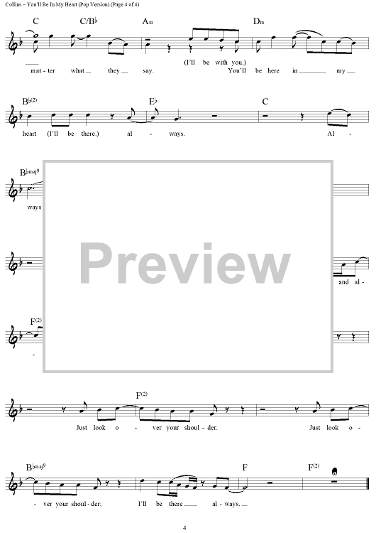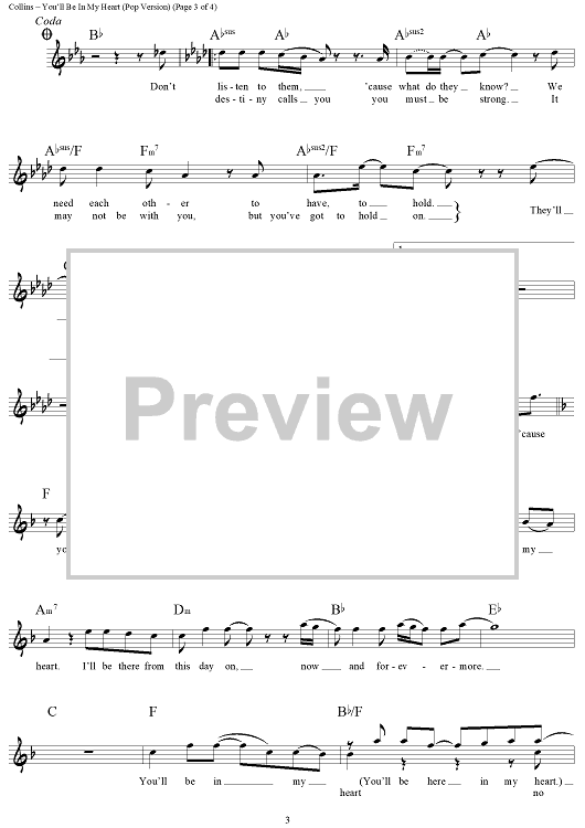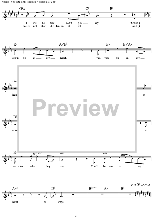 Digital Sheet Music for You'll Be In My Heart (Pop Version) by Phil Collins scored for Lead Sheet; id:448623