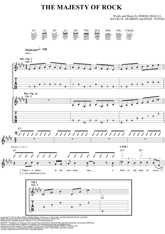 Digital Sheet Music for The Majesty of Rock by Spinal Tap, Nigel Tufnel, David St. Hubbins, Derek Smalls scored for Guitar Tab/Vocal; id:119468
