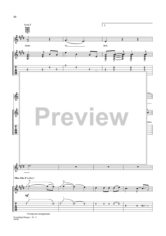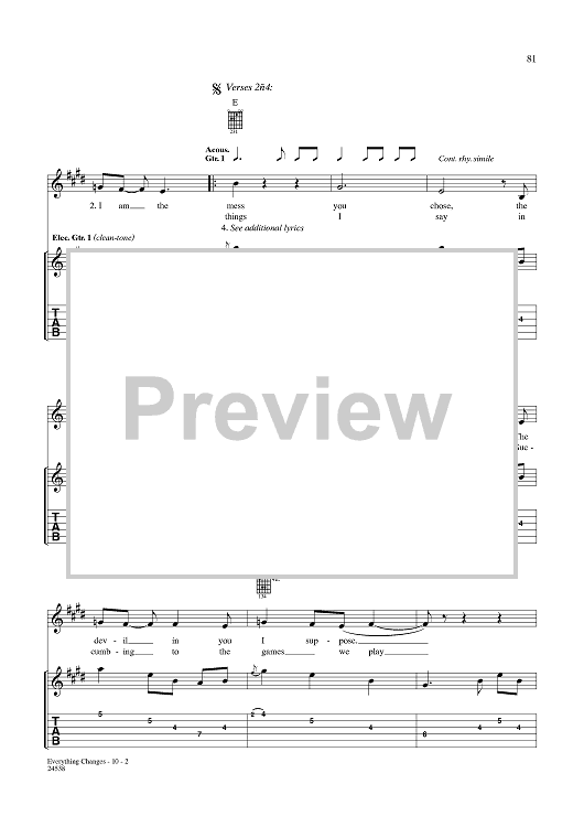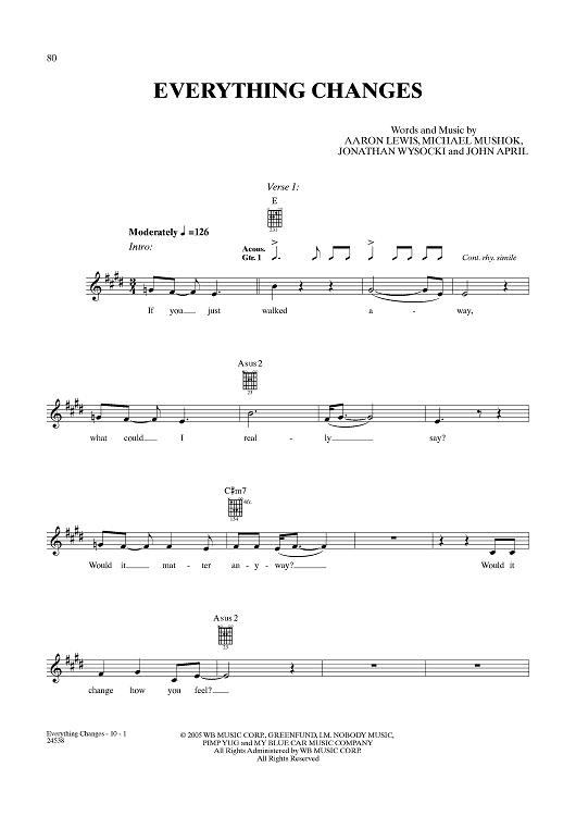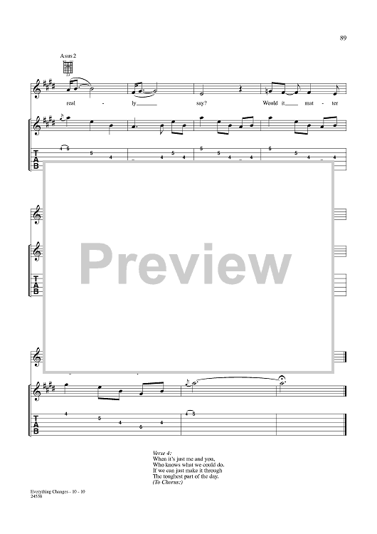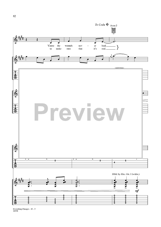 Digital Sheet Music for Everything Changes by Aaron Lewis, Michael Mushok, Jonathan Wysocki, John April, Staind scored for Guitar Tab/Vocal; id:359993