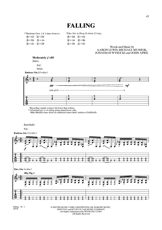 Digital Sheet Music for Falling by Aaron Lewis, Michael Mushok, Jonathan Wysocki, John April, Staind scored for Guitar Tab/Vocal; id:359989