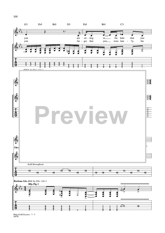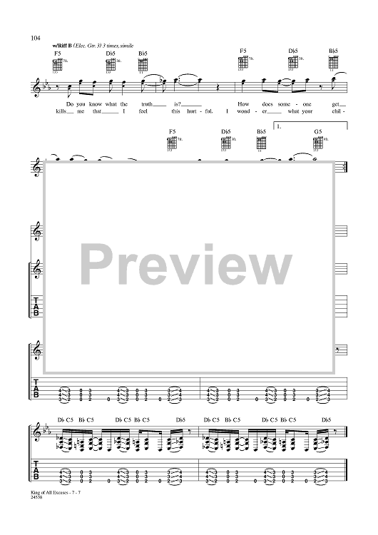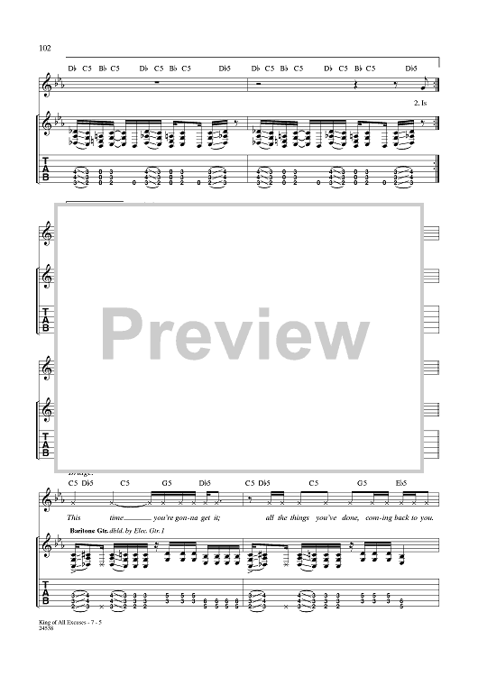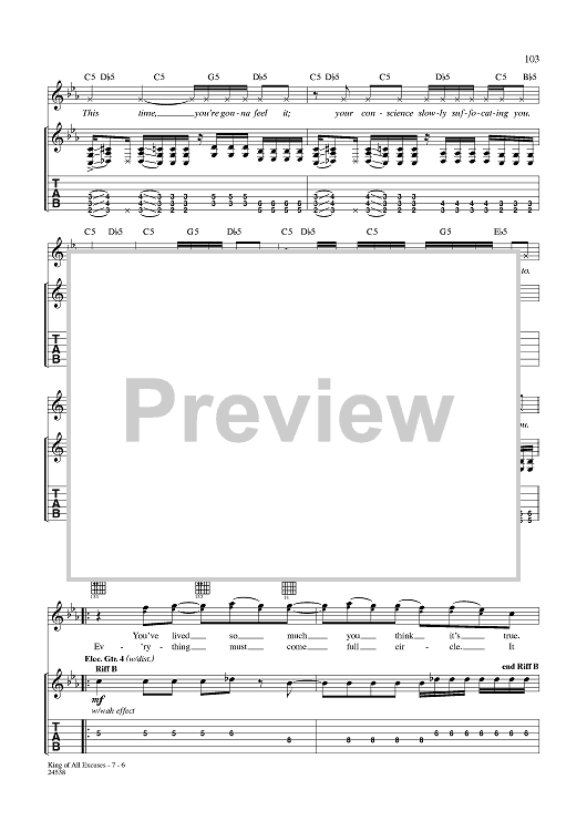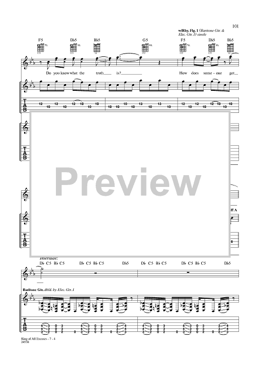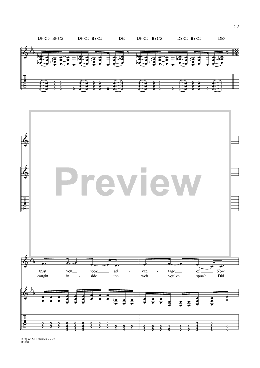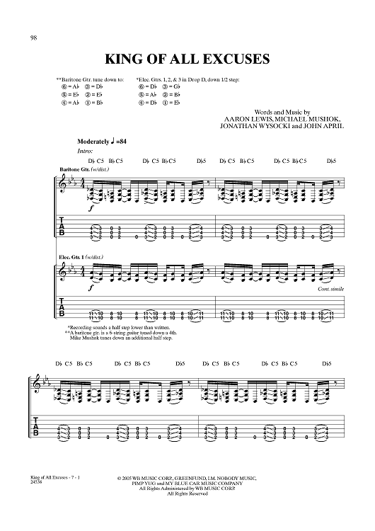 Digital Sheet Music for King of All Excuses by Aaron Lewis, Michael Mushok, Jonathan Wysocki, John April, Staind scored for Guitar Tab/Vocal; id:359995