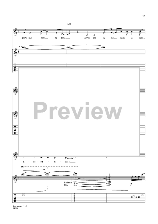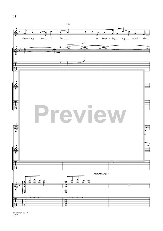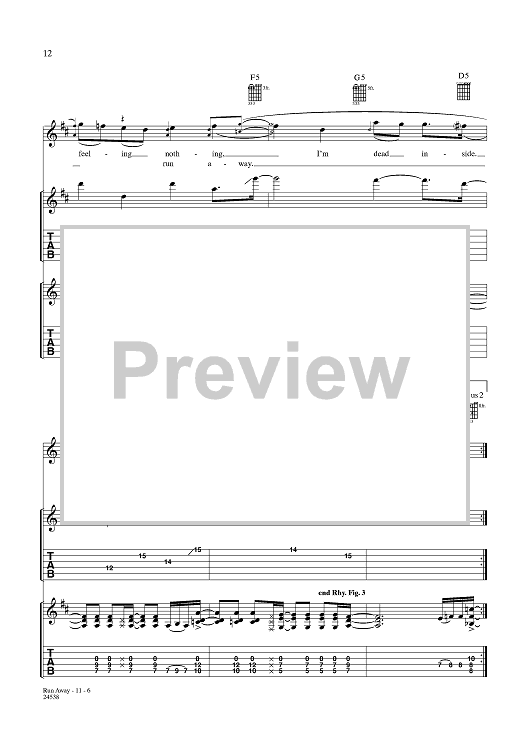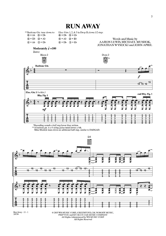 Digital Sheet Music for Run Away by Aaron Lewis, Michael Mushok, Jonathan Wysocki, John April, Staind scored for Guitar Tab/Vocal; id:359985