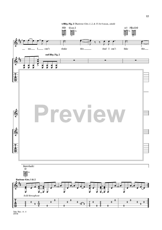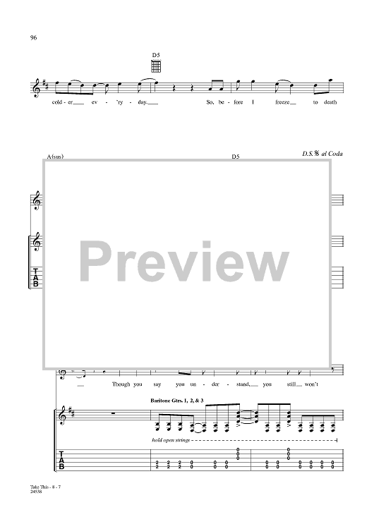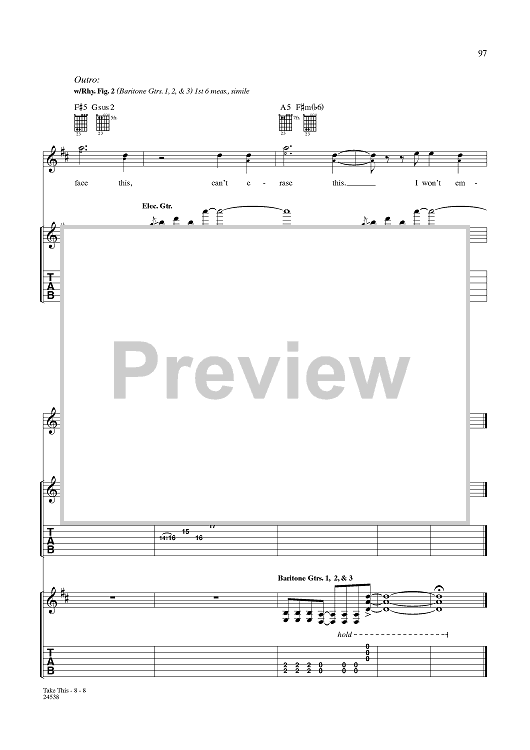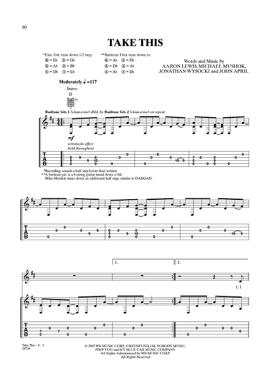Digital Sheet Music for Take This by Aaron Lewis, Michael Mushok, Jonathan Wysocki, John April, Staind scored for Guitar Tab/Vocal; id:359994