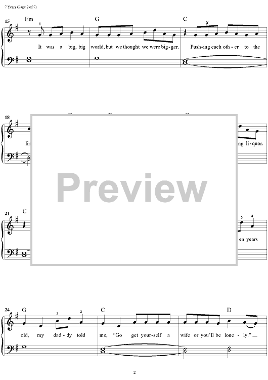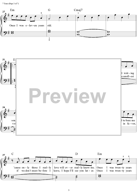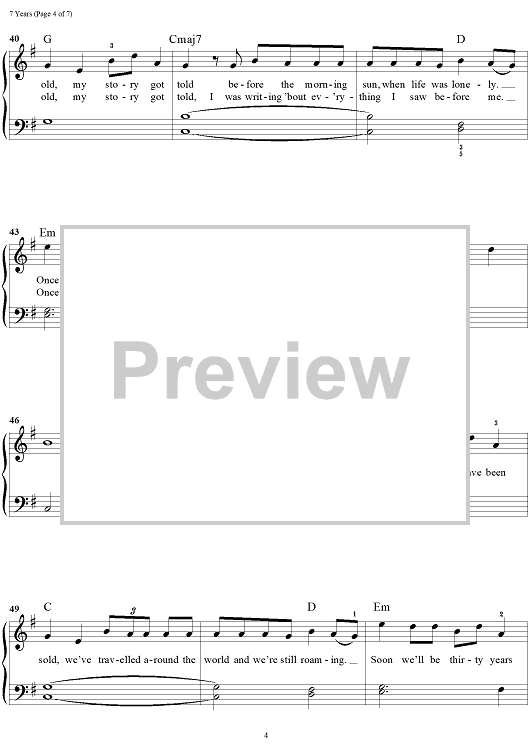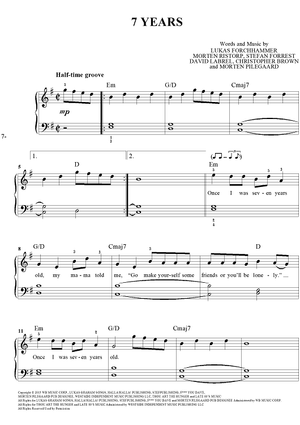 Digital Sheet Music for 7 Years by Lukas Forchammer, Stefan Forrest, Morten Ristorp, Morten Pilegaard, David Labrel, Morten Jensen, Lukas Graham scored for Easy Piano/Vocal/Chords; id:460190