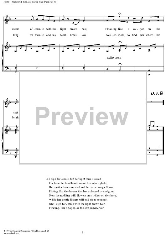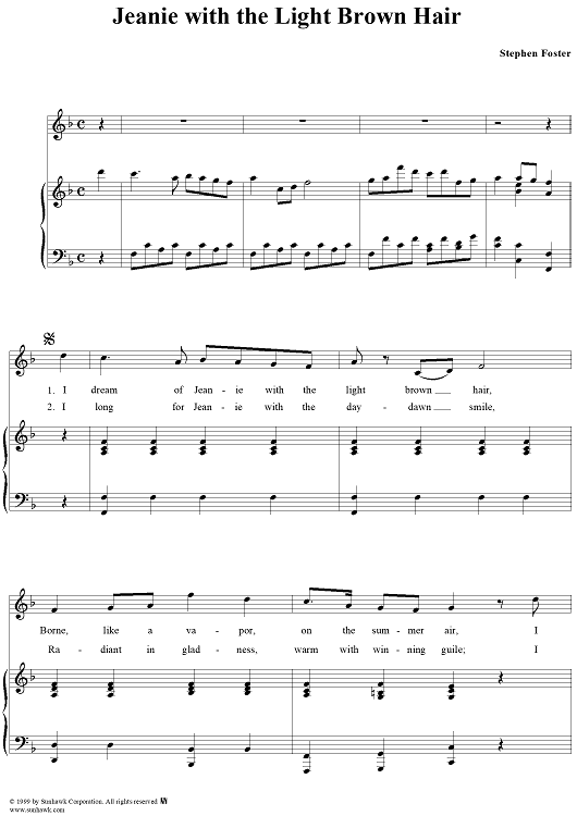 Digital Sheet Music for Jeanie with the Light Brown Hair by , Stephen Foster scored for Piano/Vocal; id:118170