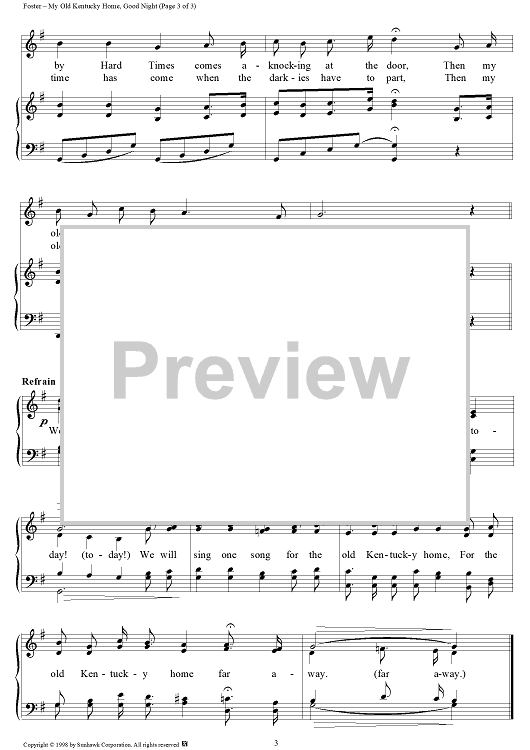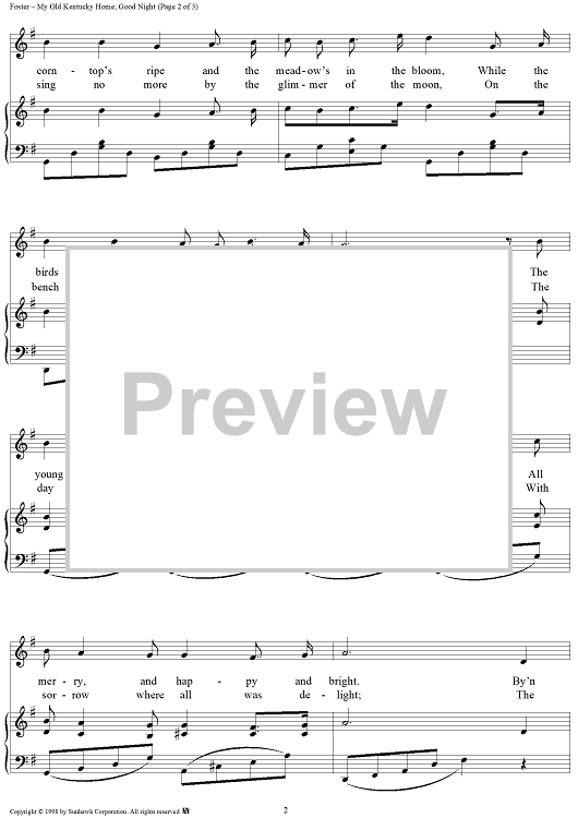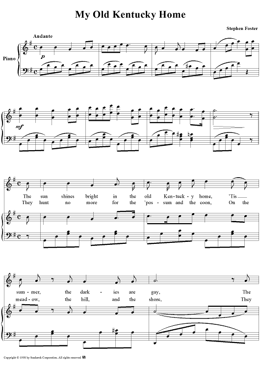 Digital Sheet Music for My Old Kentucky Home by , Stephen Foster scored for Piano/Vocal; id:108930