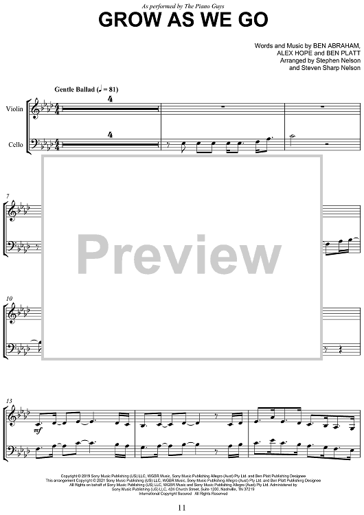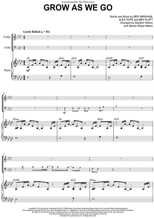 Digital Sheet Music for Grow As We Go (As performed by the Piano Guys) by Steven Sharp Nelson, The Piano Guys, Alex Hope, Ben Abraham, Ben Platt, Stephen Nelson scored for Piano Solo; id:470078